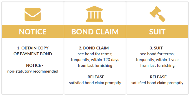 As mentioned above, if a public project is bonded, then claimants have an opportunity to make a claim against the bond. You should review the terms of the bond to determine the deadline for claims, but frequently the deadline is within 120 days from last furnishing materials or services.