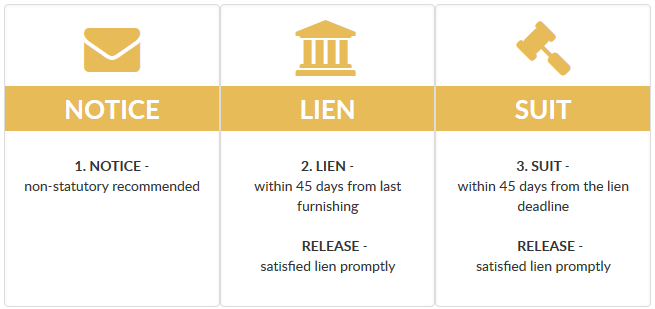 Although not required, frequently public projects are bonded, which provides those furnishing to public projects the ability to secure rights in the event they are not paid. But what happens to those who furnish to a project that isn’t bonded? How can they secure their right to get paid?